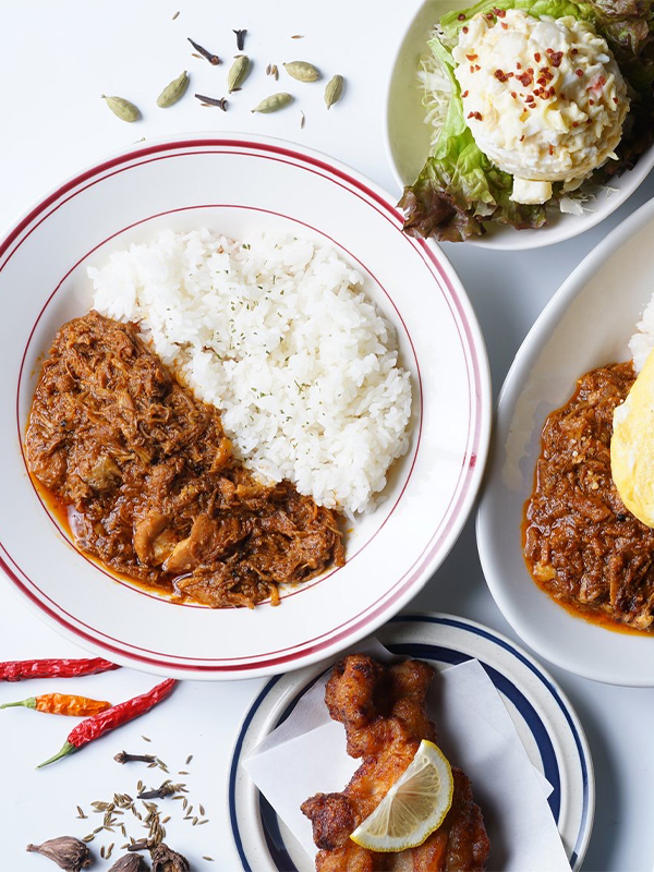 一人飲みから女子会・家族利用まで幅広く、予約・貸切にも対応。冷凍カレーは自販機でも販売中です。